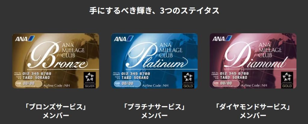 ANAプレミアムメンバーは3つのステータス「ブロンズ」「プラチナ」「ダイヤモンド」があります。