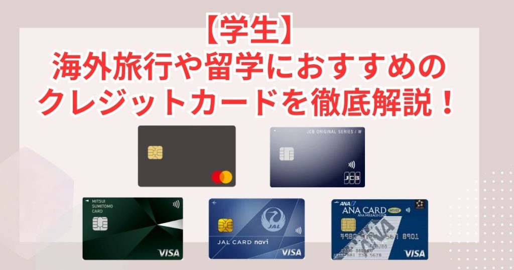 【学生】海外旅行や留学におすすめのクレジットカードを徹底解説!選び方や注意点は?海外旅行や留学に行くけど、学生に合うクレジットカードってどれ? そんな疑問を持っているあなたに、この記事はピッタリです。 海外では、クレジットカードが“財布の代わり”になる大切な存在。保険・現地通貨の引き出し・キャッシュレス決済・身分証明な...